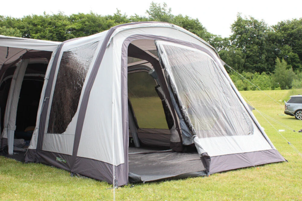 The Outdoor Revolution Movelite T4E Front porch is ideal for those who require an additional front door, which will help to enclose the porch living space. The doorway is made from polycotton, and matches the fabric and design of the main awning. Also comes complete with secondary mesh door for additional air ventilation into the porch space of the awning.