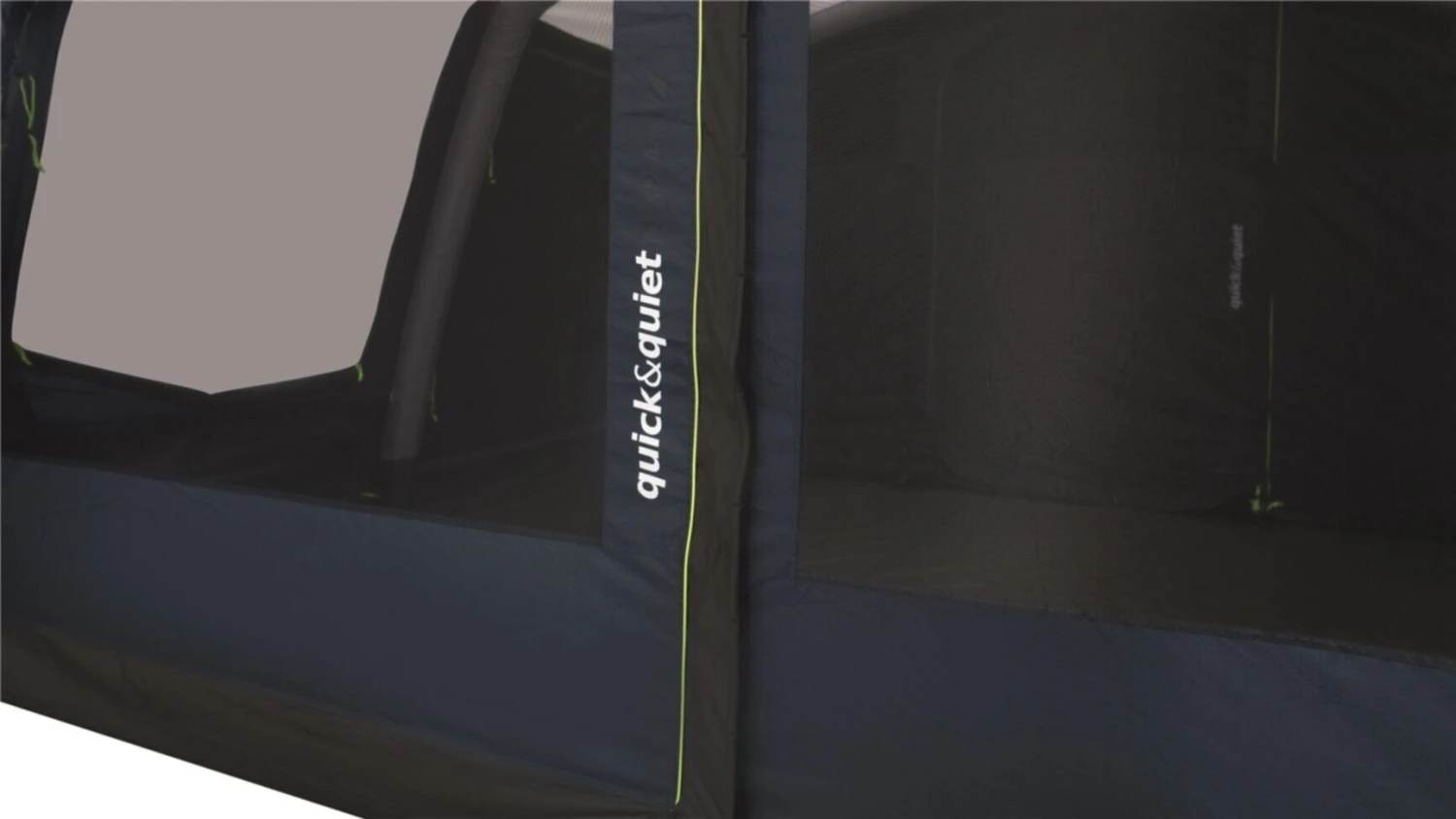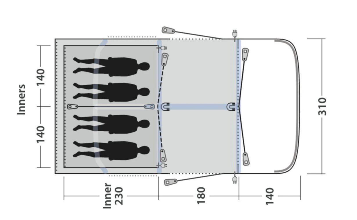 Ambassador Dark Bedrooms – offer a deeper profile of bedroom, ideal for larger camp beds, queen sized airbeds, as it has enough depth for them to be positioned lengthways inside the inner tent. Further to this, the darker bedrooms have Quick and Quiet Access, which helps silent access into the sleeping compartment, to reduce the likelihood of waking someone. The doors do have ancillary zips to completely, and safely enclose the bedrooms entirely. The Springville will sleep up to 4 people across 1 bedrooms, which can be separated into two sleeping compartments, with the zipped inner divider.