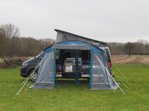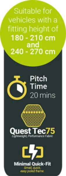 Built in zipped drive away kit and sewn in rear draught pads both offer a better connection to your vehicle and the adjustable multi fit frame adds to this by being quick pitching using the minimum amount of poles necessary and adjustable to work well on uneven ground