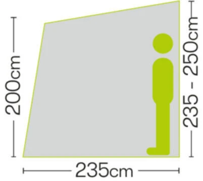 Designed to be lightweight, budget and user friendly, due to the lightweight fabric a smaller pack size is achieved, simply deflate your beams and roll it down with no fuss – pitching it is just as easy it can be done by 1 person in around 10 minutes, you can remove some panels to make it even lighter which helps when gliding it on to the van rail. For a perfect fit it requires the height of the fitting rail on the van to be between 235 – 250cm