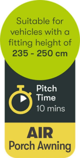New for 2022 is The Quest Falcon 220 Air porch caravan awning, an air beam design using 150 denier performance fabric with a hydrostatic head rating of 4000mm which is more than adequate for the British weather